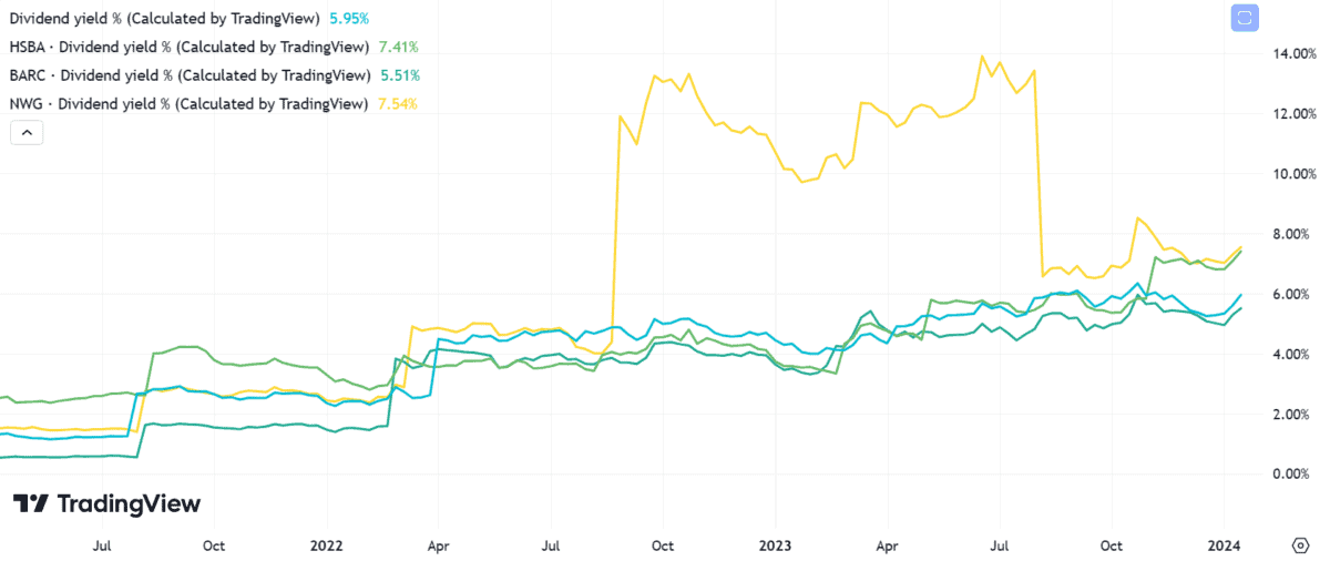 However, set against the wider industry, those shareholder payouts don’t look too remarkable. Both NatWest and HSBC offer considerably higher yields.