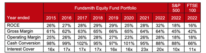 Secondly, the average Fundsmith company is far more profitable than the average FTSE 100 company. This is illustrated in the table below.