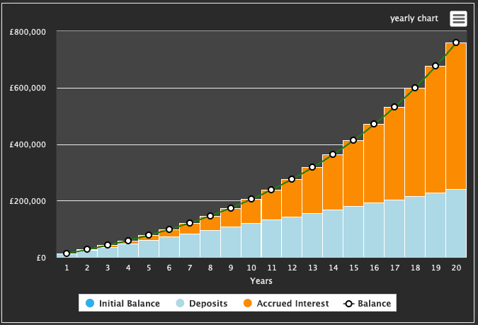 Assuming an annualised growth rate of 10% — just above long-term Stocks and Shares ISA average returns — and £800 a month of contributions plus basic-rate tax relief of £200, it would take 18 years to reach the £600k mark.
