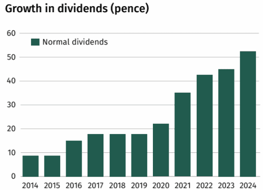 And then there’s the dividend. Based on amounts paid over the past 12 months, the stock’s yielding a very respectable 4.3%. In cash terms, its 2024 payout was 138% higher than in 2020.