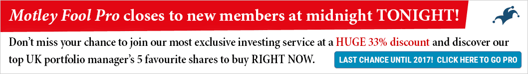Motley Fool Pro closes to new members at midnight TONIGHT! Don’t miss your chance to join our most exclusive investing service at a HUGE 33% discount and discover our top UK portfolio manager’s 5 favourite shares to buy RIGHT NOW. Last chance until 2017! Click here to go Pro.