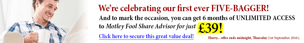 We’re celebrating our first ever FIVE-BAGGER! And to mark the occasion, you can get 6 months of UNLIMITED ACCESS to Motley Fool Share Advisor for just £39!